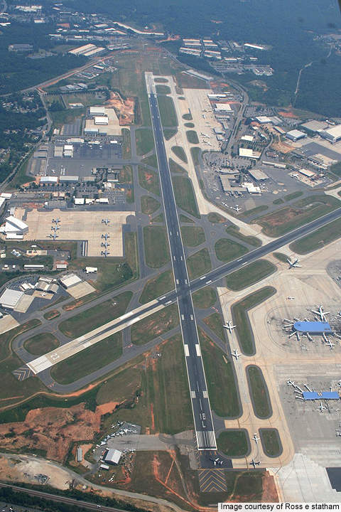 The airport features one crosswind and three parallel runways. The runways, designated 18C/36C, 18R/36L and 18L/36R, have a length of 10,000ft, 9,000ft and 8,676ft respectively. The 5/23 is a 7,500ft-long crosswind runway.