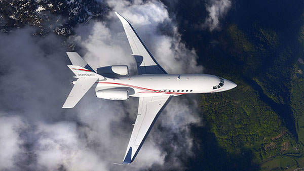 The Falcon 2000 can carry a maximum of 19 passengers and has a range of 5,630km.