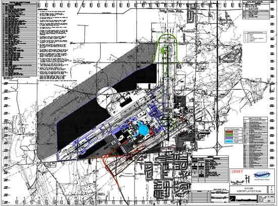 The plans also include a cargo hub expansion, the construction of an air cargo access road west of runway 6L-24R, and the acquisition of land to the north of the airport.