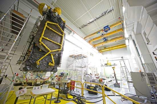 The W7 satellite is manufactured at Cannes Mandelieu Space Centre by Thales Alenia Space. It was designed for a lifespan of 15 years.