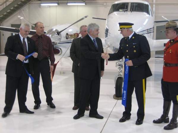 The hangar houses aircraft belonging to Royal Canadian Mounted Police and Transport Canada.