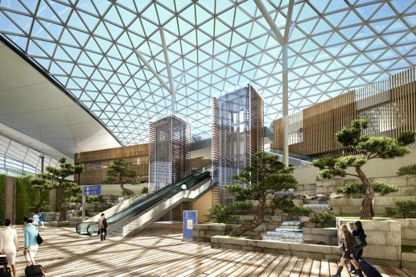 The terminal will have sculpture and exhibition areas, gardens featuring waterfalls, indoor streams, koi ponds and expansive indoor gardens.