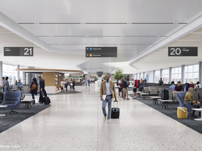 The marketplace will have new food and beverage options. The hold rooms will be 40% to 60% larger than those in the existing terminal for passenger comfort.