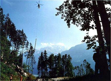 The helicopters have been used for the installation of power transmission lines and cable railway towers at hotels for the mountain ski holiday industry.