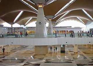 The 241,000m² main terminal building houses customs and immigration counters, duty free and retail outlets and restaurants. The steel ceiling is supported by conical pillars. The main terminal building and contact pier have a combined area of 336,000m² and can handle five million passengers per year.