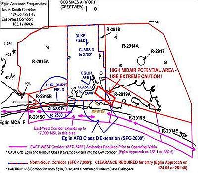 Okaloosa County Airport, although only a regional domestic airport, is one of the busiest in the United States. The reason for this is that it shares space with the US Air Force’s Eglin airbase (the site for USAF Air Armament Center which tests smart bombs and other high-tech weaponry), which has annual operations estimated at 500,000, ranging from high-performance fighter aircraft and turboprop and jet airliners to low-speed heavy cargo aircraft.