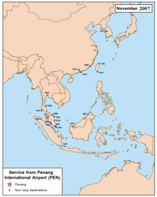 Penang International Airport, formerly known as Bayan Lepas International Airport, ranks third in Malaysia’s busiest airports, behind Kota Kinabalu International Airport and Kuala Lumpur International Airport. Located around 16km south of Georgetown, the capital of Penang, the airport links several major cities of South East Asia.