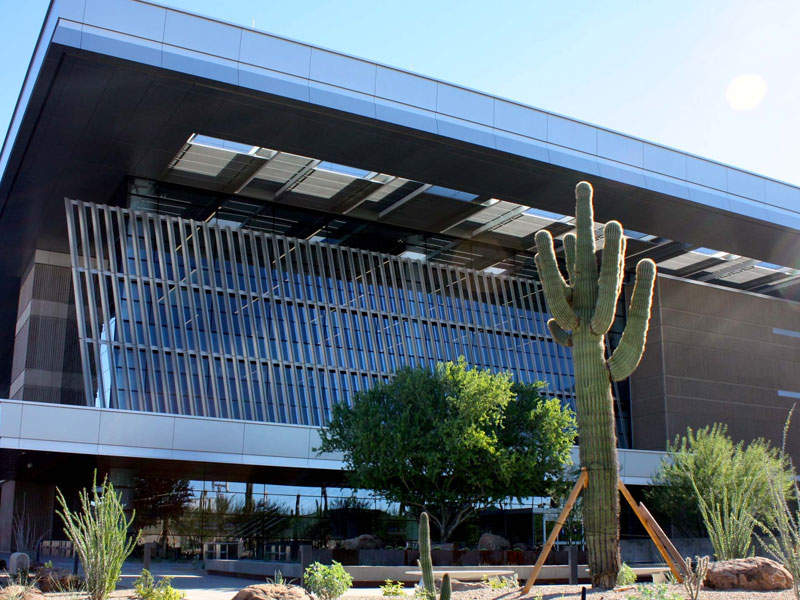 A new West Plaza, which is visible from all three levels of the terminal, was developed adjacent to the terminal’s departure atrium. Accessible to all the travellers, the new plaza provides an outdoor area with Arizona’s native plants/trees, passenger walkways, a seating area and a dog park for pets. It also features artwork and sculptures throughout the garden.