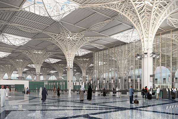 The new terminal is designed to integrate its architecture with the existing structures in the airport. The design was inspired by the Hejazi architecture, and palm tree was the main source of inspiration for the architectural form. Focus was more on elegant, modular and spacious interiors.