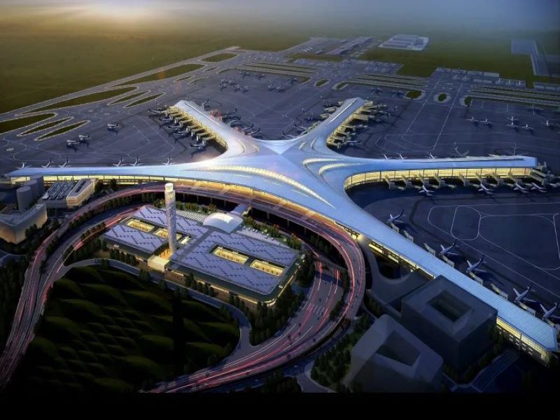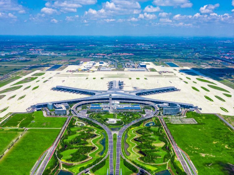 The new Chinese international airport features a 478,000m² terminal and two 3,600m-long runways. The terminal building is designed in the form of a starfish with five connected airside concourses.