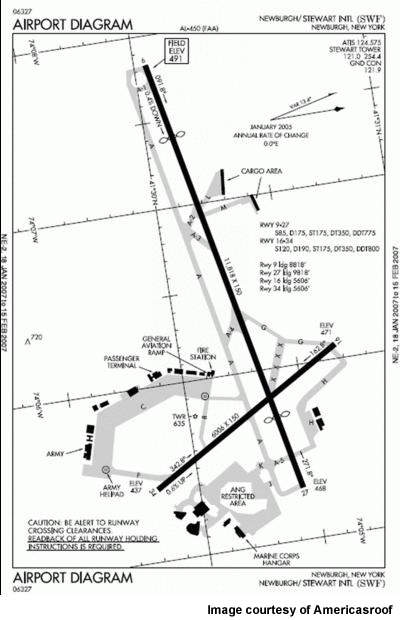 The airport was initially developed as a military base in the 1930s. It was designated the Stewart Air Force Base in 1948. The state of New York acquired the base in 1970 and converted it to an airport.