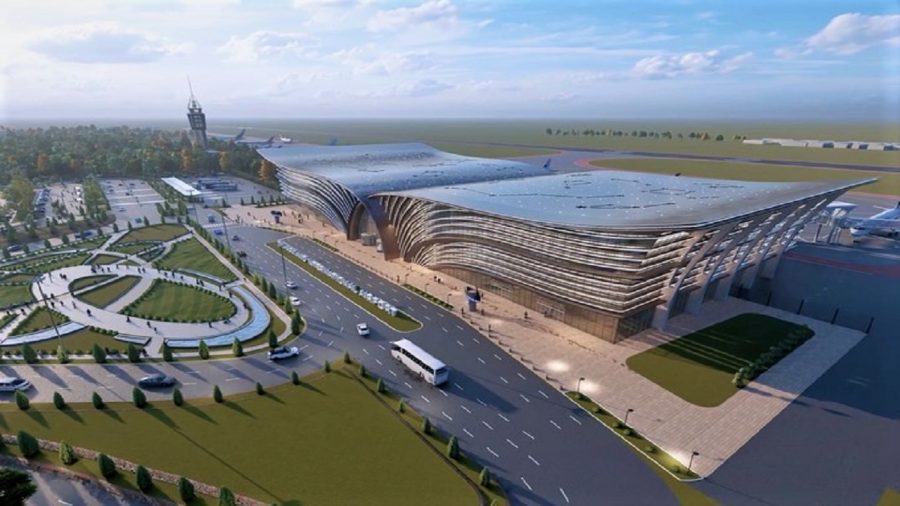 The airport expansion includes the construction of a new runway, two runway end taxiway loops and navigations aids, apron expansion, phased terminal expansion, and a new air traffic control tower and associated utilities.