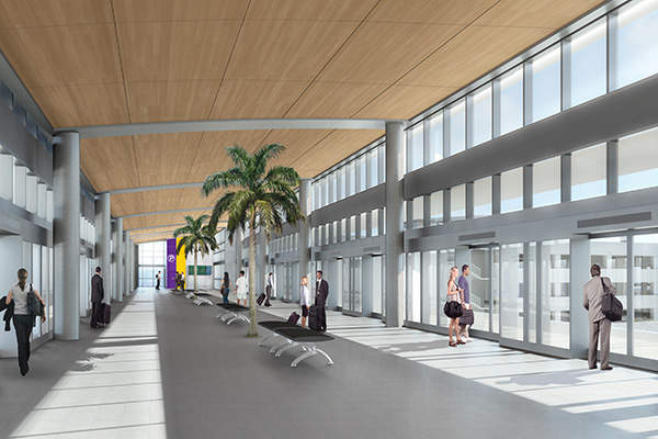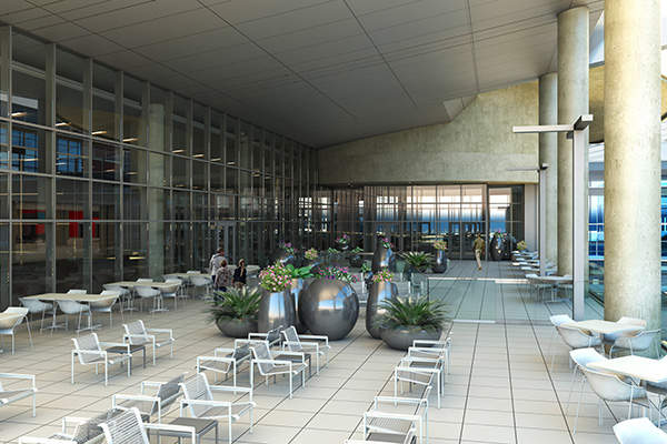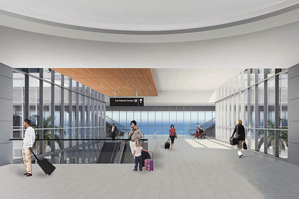 The main terminal kerbside will be expanded, covering an area of 150,000ft2, for both arrivals and departures to expedite check-ins.