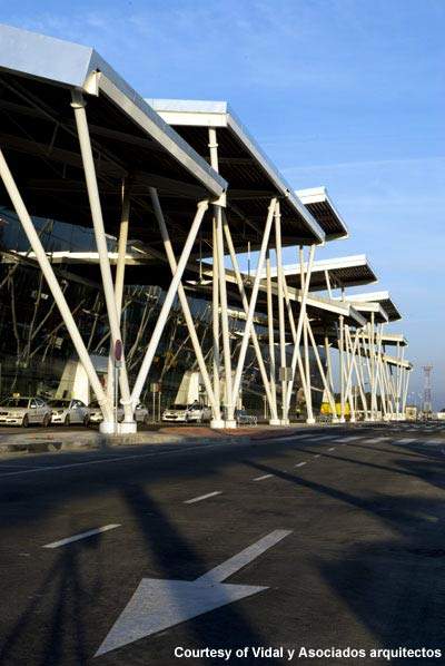 Zaragoza Airport is being put forward as a landmark for the expo and as such its architecture has had to reflect the subject of the festival, which is water and sustainability. The new terminal expansion was designed by Vidal y Asociados arquitectos as the ‘new gateway to Europe’ (the engineering work was carried out by Sener Engineering).