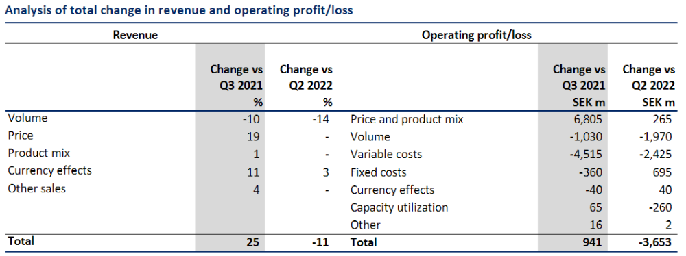 Operating profit was SEK 6,742 million (SEK 5,800 million – Q3, 2021), again due to higher prices.