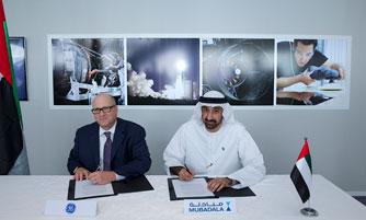 Image: Representatives from Mubadala and GE during a signing ceremony at the Dubai Airshow. Photo: courtesy of Mubadala Development Company PJSC.