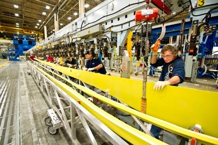 Image: Boeing stated that technicians have loaded initial parts of the spars for the first 737NG at the new rate into a spar-assembly machine. Photo: courtesy of Boeing.