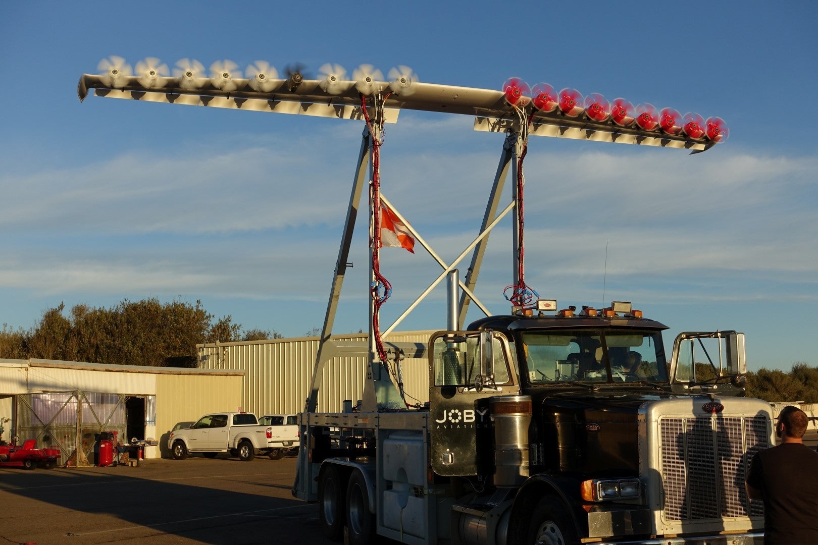 Image: The experimental wing mounted on a customised truck will be driven at speeds of up to 70 miles per hour. Photo: courtesy of Joby Aviation.