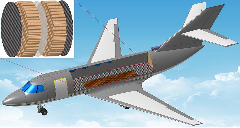 Made of 0.25mm thick rubber, the membrane can be used with honeycomb-like materials that form aircraft wings and floor and ceiling of cabins.